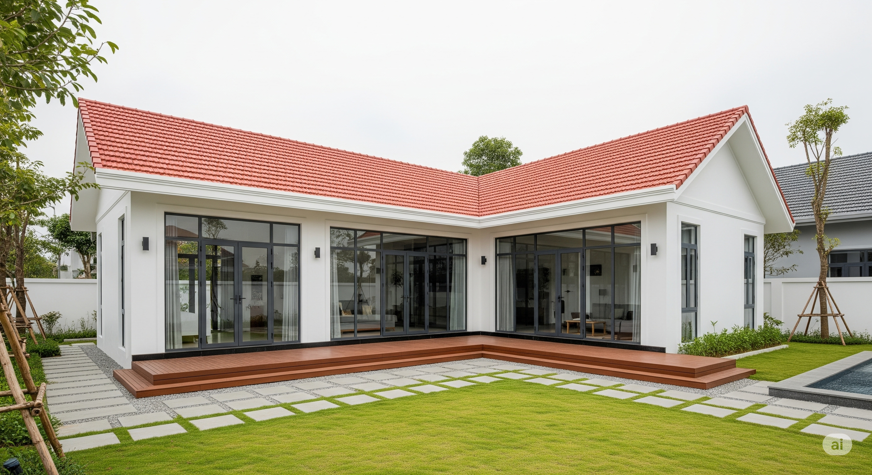 8. Mẫu biệt thự vườn hình chữ L: Tối ưu và ấm cúng